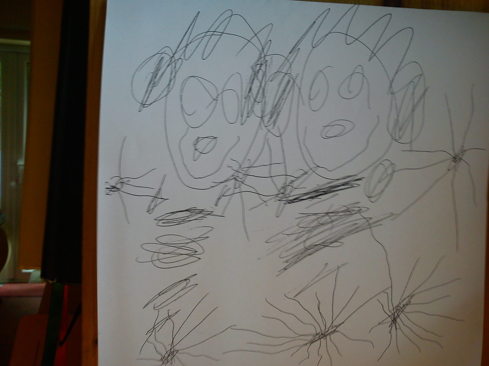 My 4 year old son has always maintained he can’t draw until yesterday when he suddenly had a surge of creativity and produced a whole pile of pictues, of which this was the sweetest. Apparently it’s me and him. Cool. I am a proud mum.
